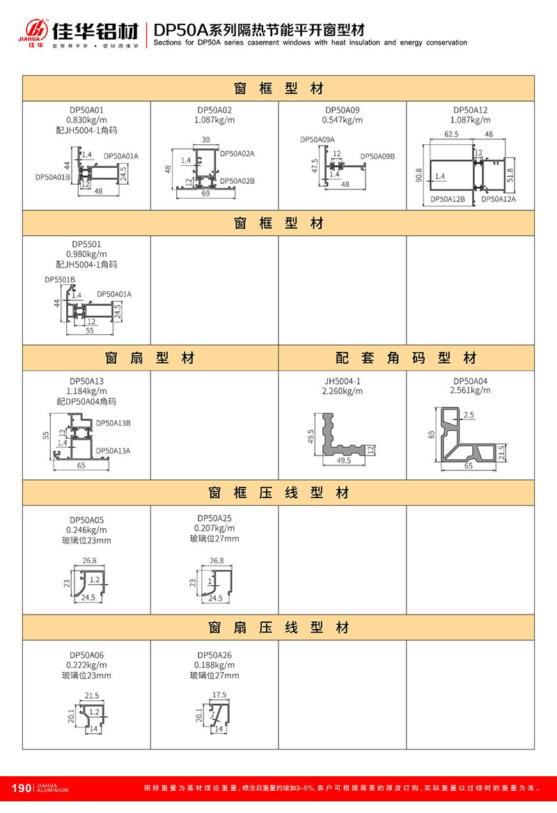 鋁型材規(guī)格型號:DP50A平開系列